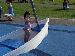 I heard that this Memorial Day weekend was the first time it has been sunny in Seattle since 1974. So, we definitely got out and enjoyed it. We had a barbecue at Matt and Elaine's place, took several trips to nearby parks and checked out the Crossroads Splash Park. Such fun and can't believe that the weekend is already over. Here's some pictures of the barbecue - we had tri-tip, ribs, chicken, pasta salad, baked potatoes, corn on the cob and some yummy desserts. Erika liked the corn on the cob the most.